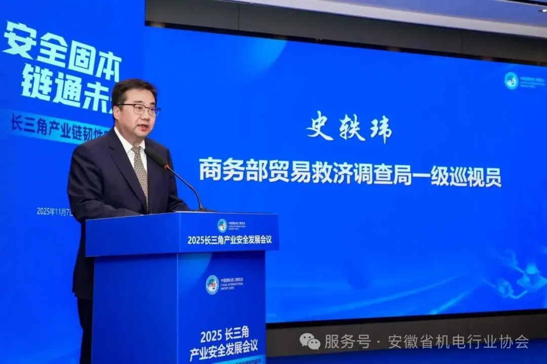 作为长三角机电产业协同发展的重要参与者,安徽省机电行业协会受邀参加11月7日在沪举办的 “2025长三角产业安全发展会议”。本次会议以“安全固本,链通未来——长三角产业链韧性跃升” 为主题,由沪苏浙皖三省一市商务主管部门指导,商务部长三角产业安全监测工作站等联合主办,汇聚100余名政企代表共商产业安全大计,发布产业链韧性图谱等重磅成果,并启动 “长三角产业韧性维护共同体”,成为承接进博会溢出效应的核心交流平台。